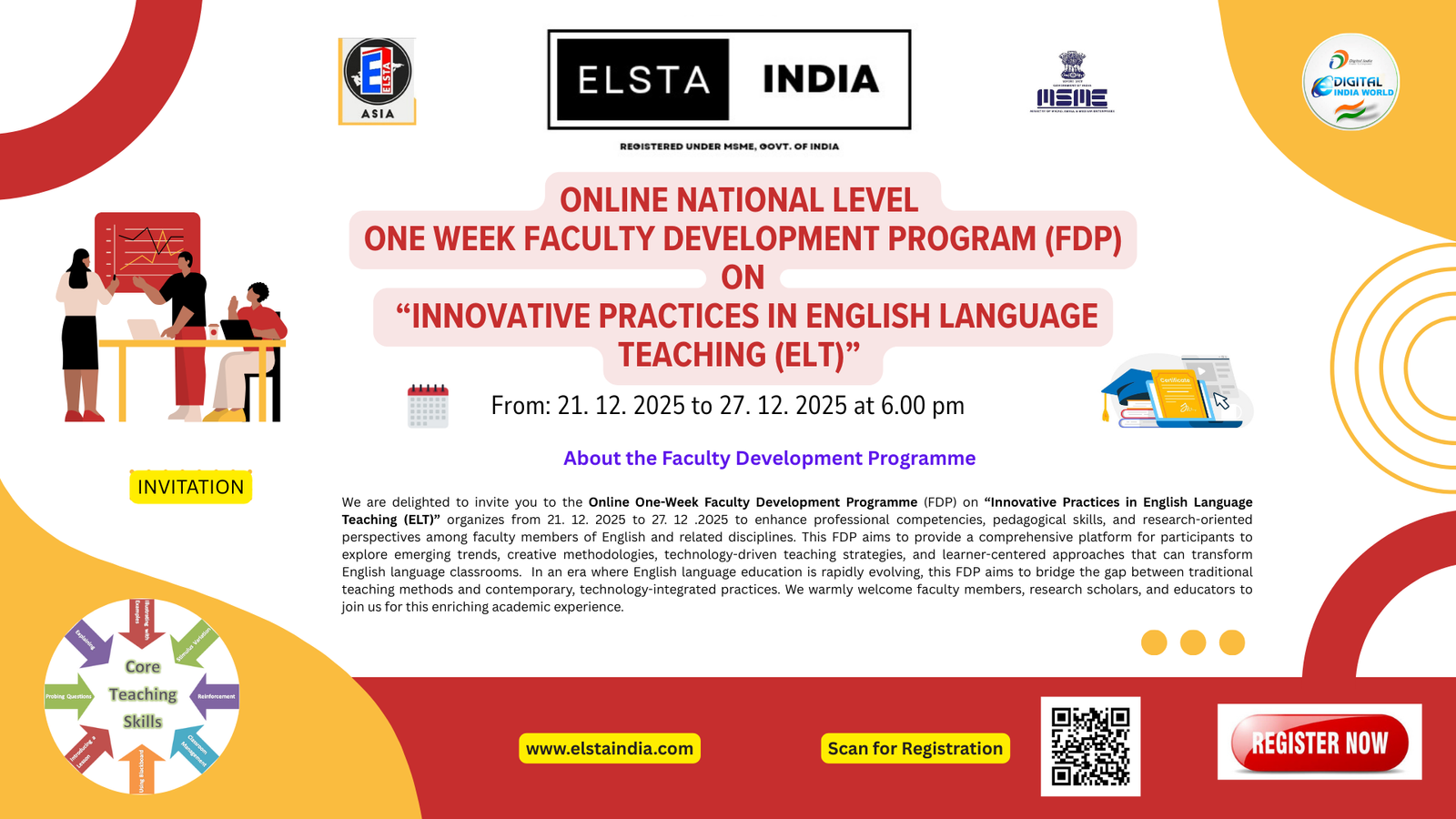 ELSTA, INDIA💻📱📲🖨🛜 Organizes Online 1 Day National Level Professional Development ProgramOn“Presentation Skills & Public Speaking in Academic Contexts” 🗓10th January 2026 🕜Time: 6:00 pm 💐💐Platform: Google Meet Registration Link:https://forms.gle/epmEHt6Jv1FBodNW9 Limited [...]