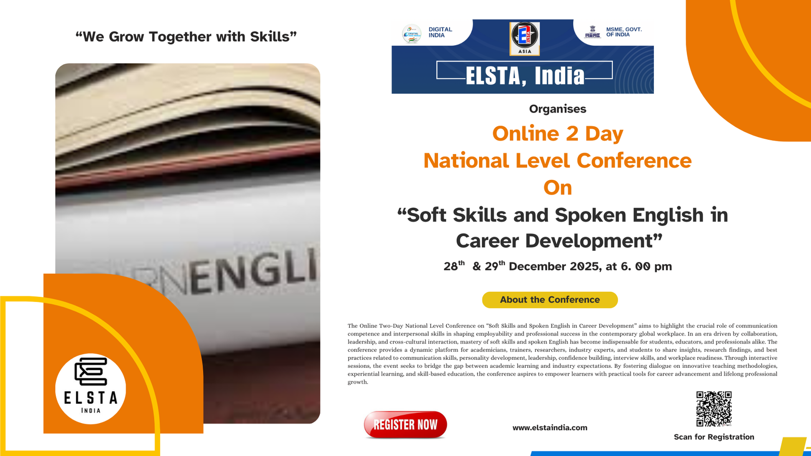 ELSTA, INDIA💻📱📲🖨🛜 Organizes Online 2 Day National Level ConferenceOn“Soft Skills and Spoken English in Career Development” 🗓28th & 29th December 2025 🕜Time: 6:00 pm 🇨🇮🇨🇮Platform: Google Meet Registration Link:https://forms.gle/F5CpxjxtVSG54jTq8 Limited [...]