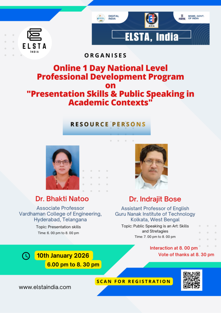 ELSTA, India Online One Day Professional Development Program on “Presentation Skills and Public Speaking in Academic Contexts”
