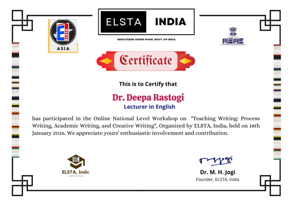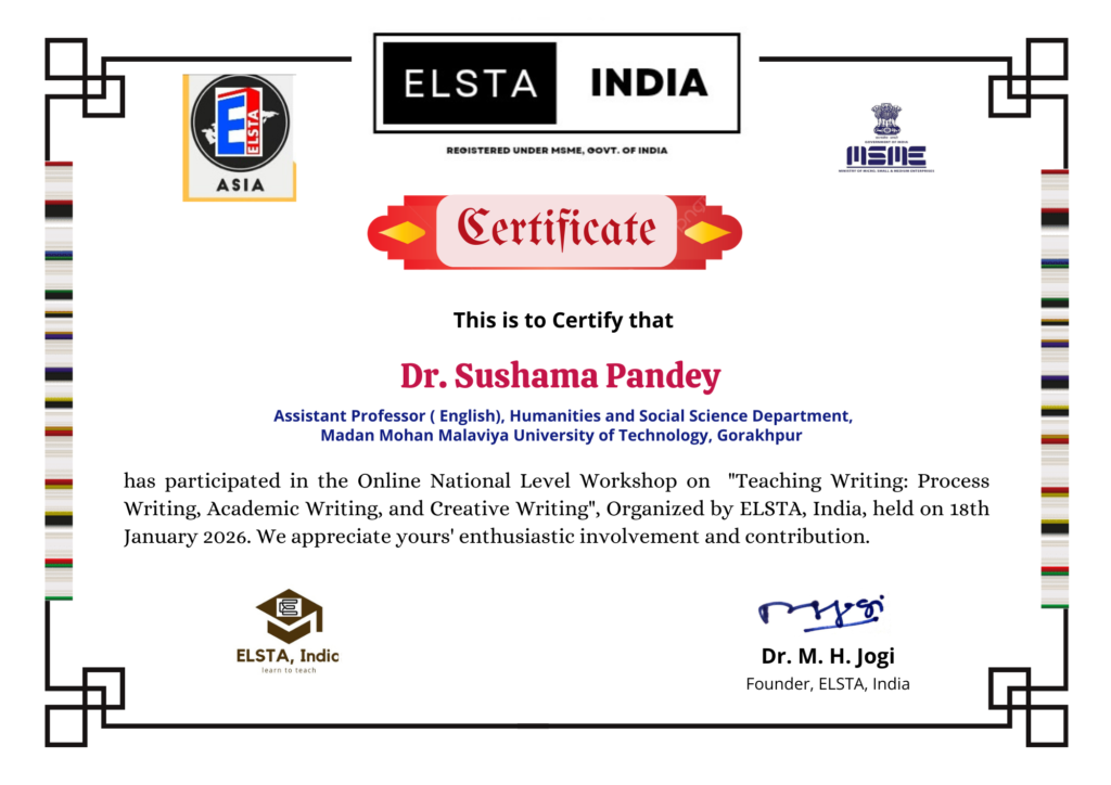Online National Level Workshop on ” Teaching Writing: Process Writing, Academic Writing, and Creative Writing”